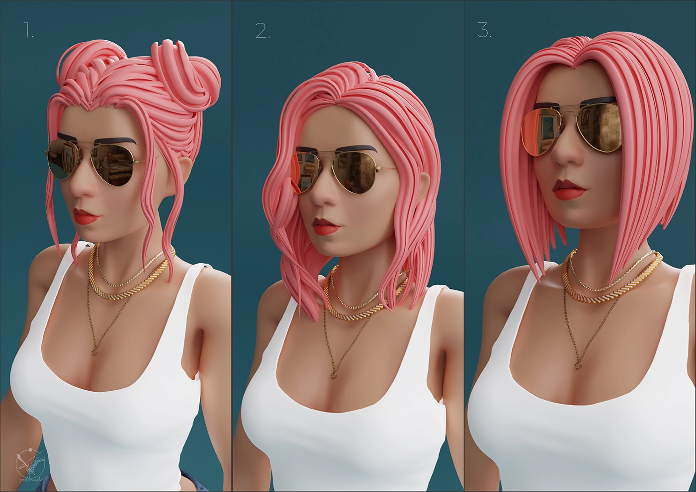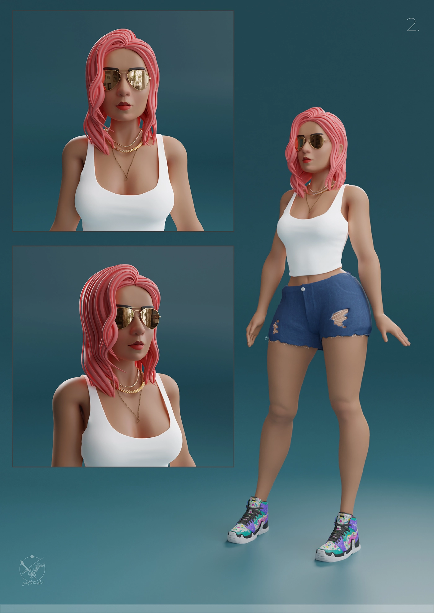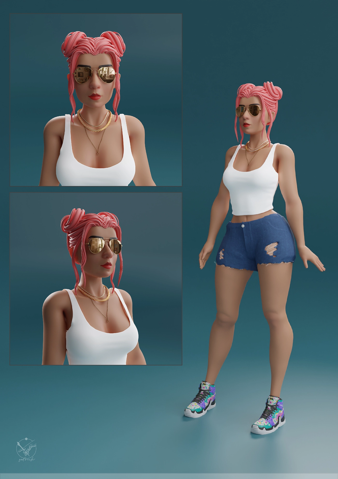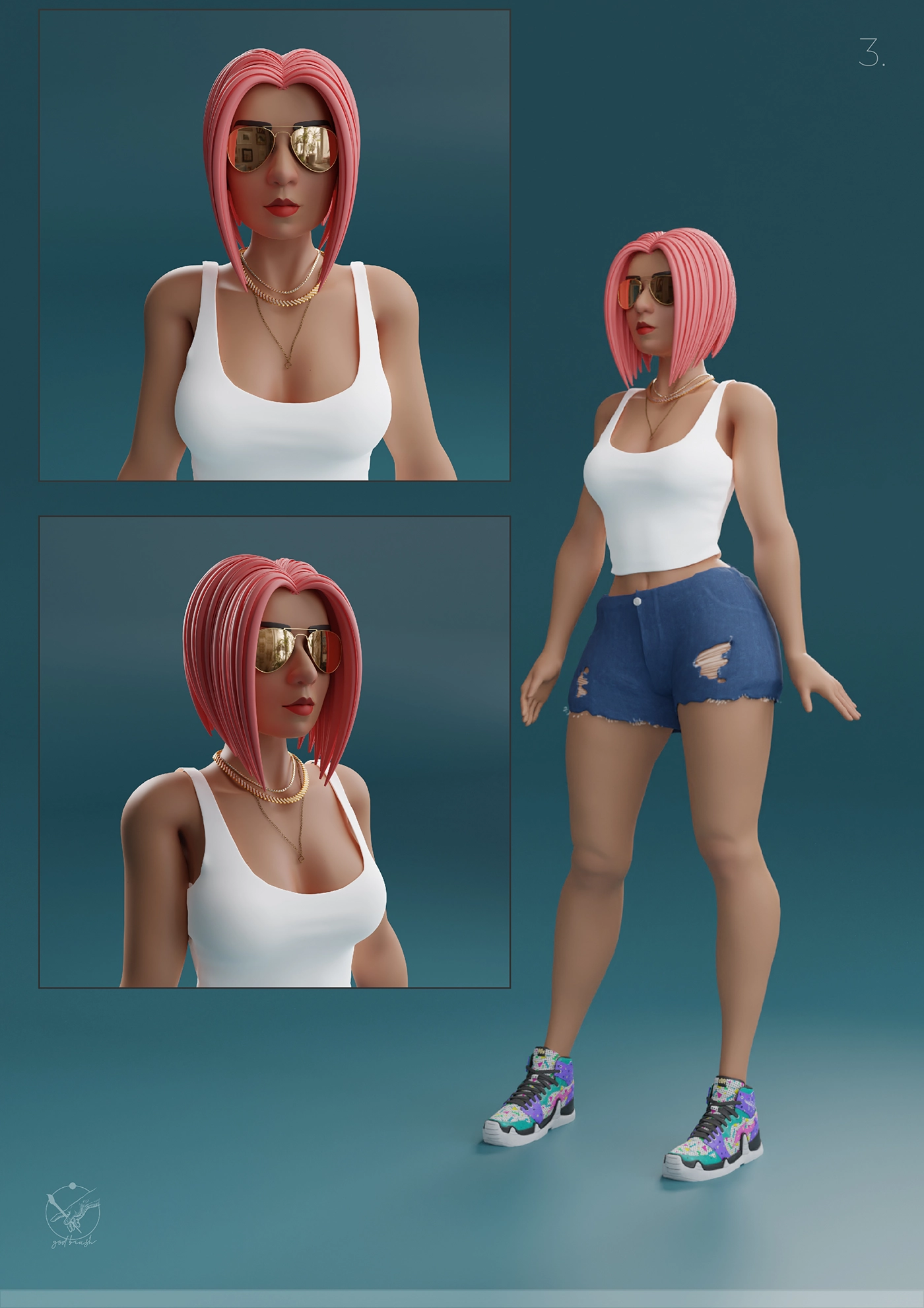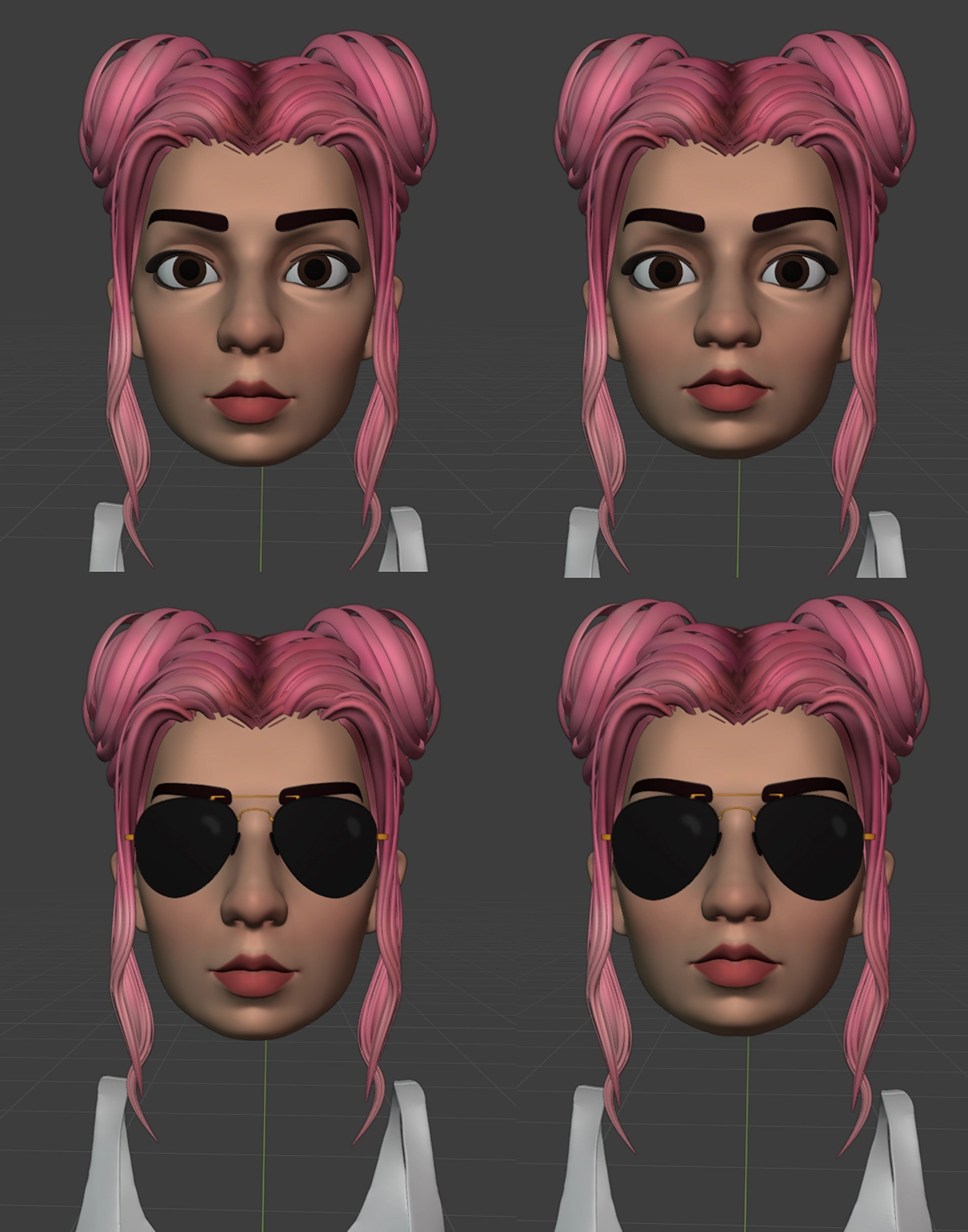 -3D character modeling development featuring multiple design iterations, facial feature variations, and hairstyle options—each refined to capture and convey the captivating aura of Punjabi Artist- Jasmine Sandlas.